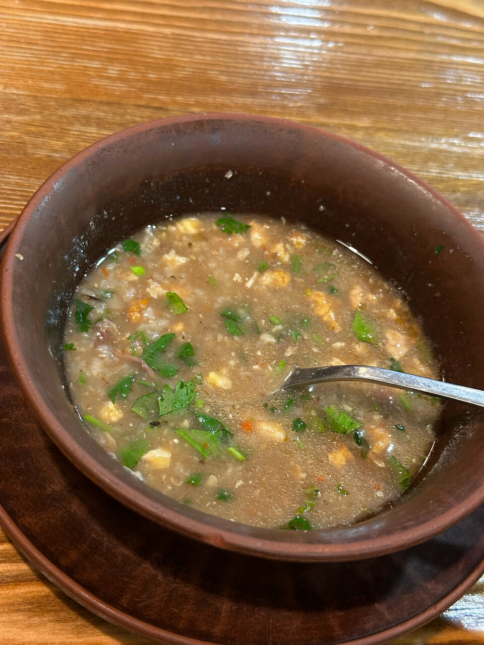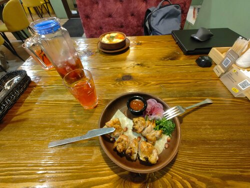 Все было очень вкусно. 😋 официант вообще отличный, придем как нибудь в еще. посидели с подругой отдохнули на ура. порции большие, одним супом можно наесться 😋